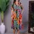 Effortlessly stylish dress with a vibrant abstract print, tie-up shoulder straps, and a chic high-low handkerchief hemline ? perfect for casual days or evening gatherings.
