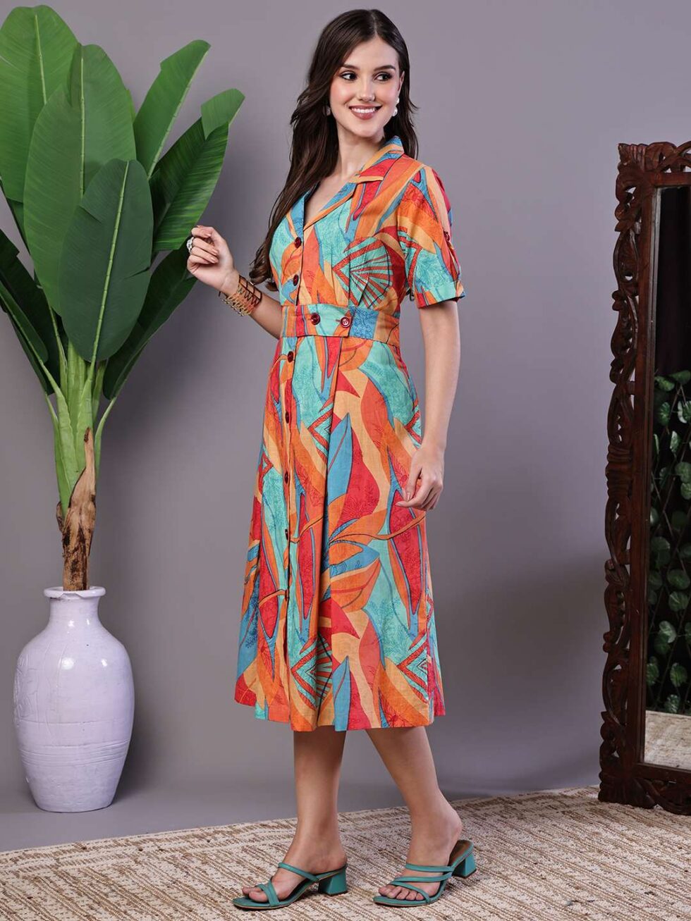 Be the first to review “Women’s Tropical Print Button-Down Cotton Midi Dress”